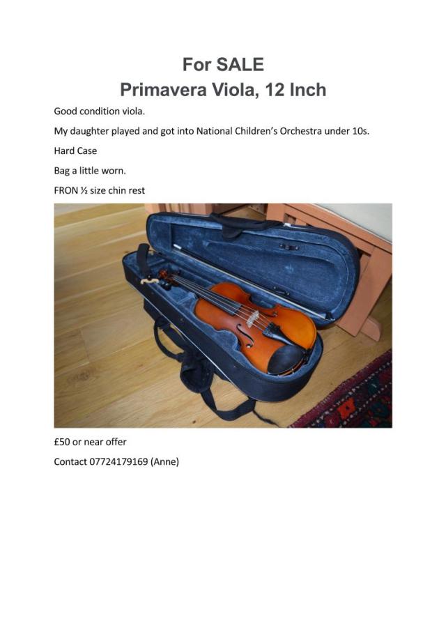 1/2 size violin for sale £50. Please contact Johanna Korndorfer at j.korndorfer@blueyonder.co.uk